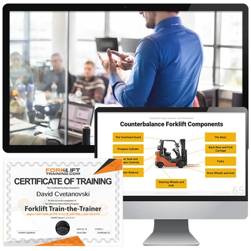 Train and certify your workers in-house with your own internal trainers using our complete OSHA, ANSI, and CSA Forklift Instructor Package.